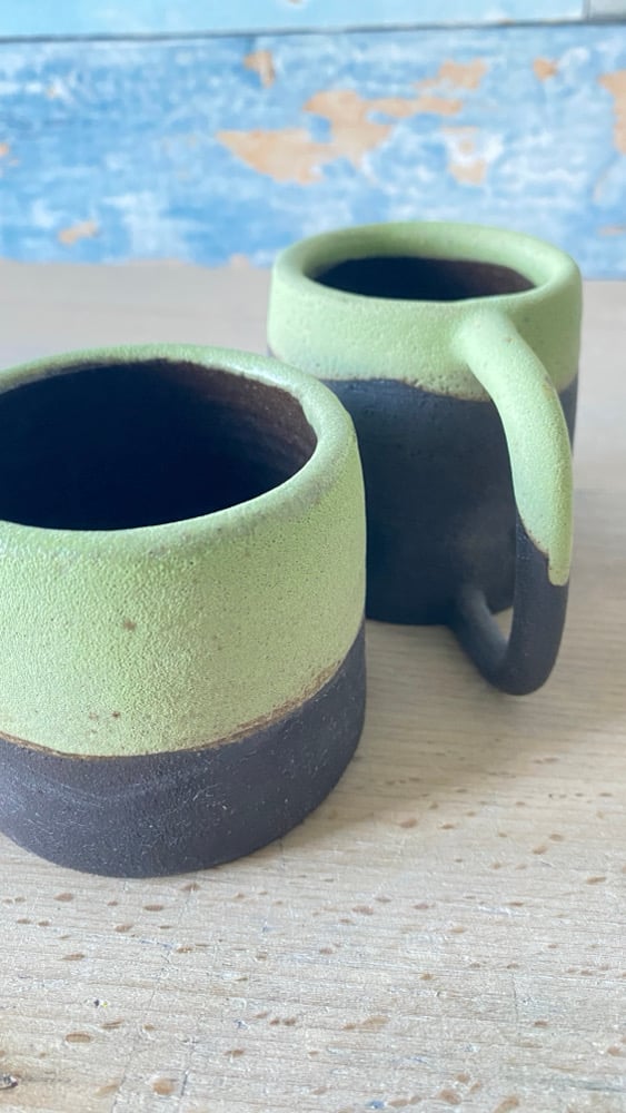 Handmade, black stoneware duo.